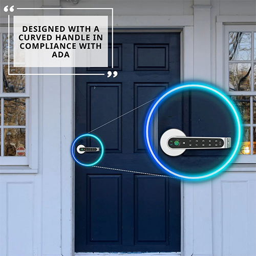EASY-TO-OPEN CURVED HANDLE Unlock your door with ease thanks to this American with Disabilities Act/SeamTech-compliant smart door lock handle. ____________________